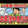 一応短期間だけやったことあるから分かるけど、自身の想定しない方に動いたとき、必ず損切りをしなければいけない。常にチャートを見ていないといけないし、メンタルがやられる。